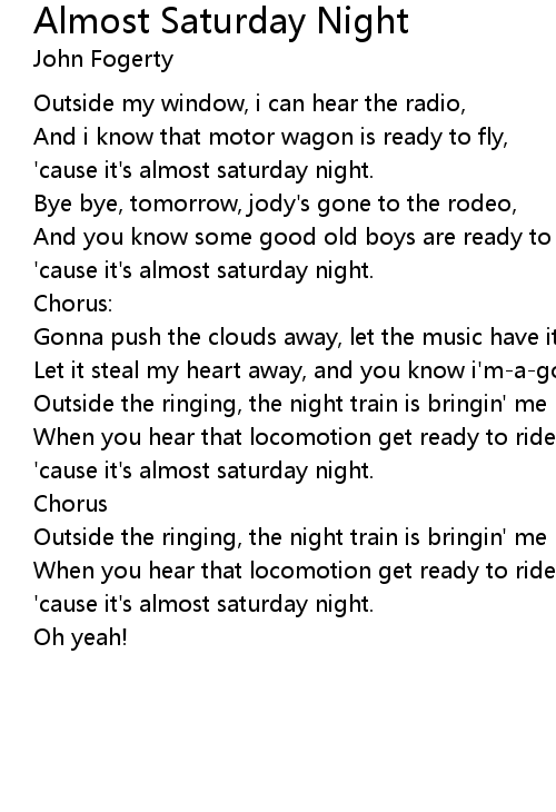 'cause it's almost saturday night. |