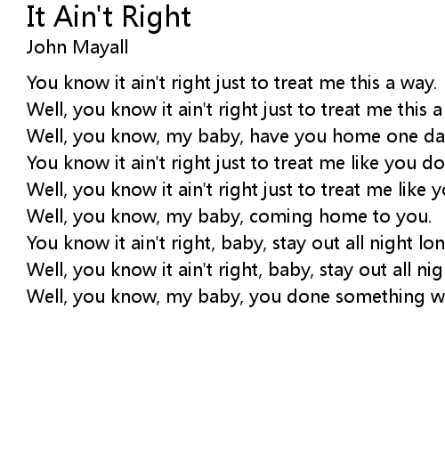 | You know it ain't right just to treat me like you do. | |