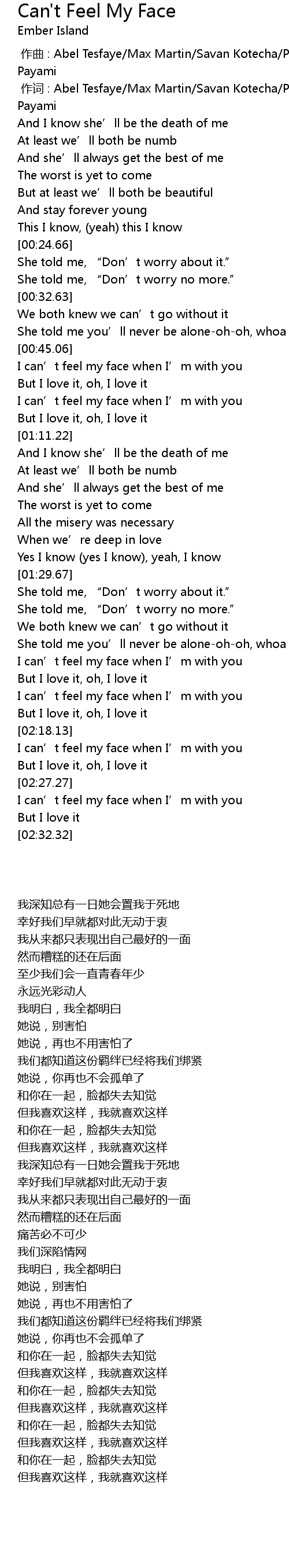 | [00:53.80] | I can' t feel my face when I' m with you |