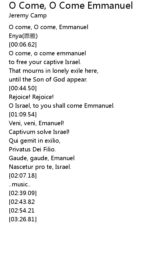 | [00:00.85] | O come, O come, Emmanuel |
