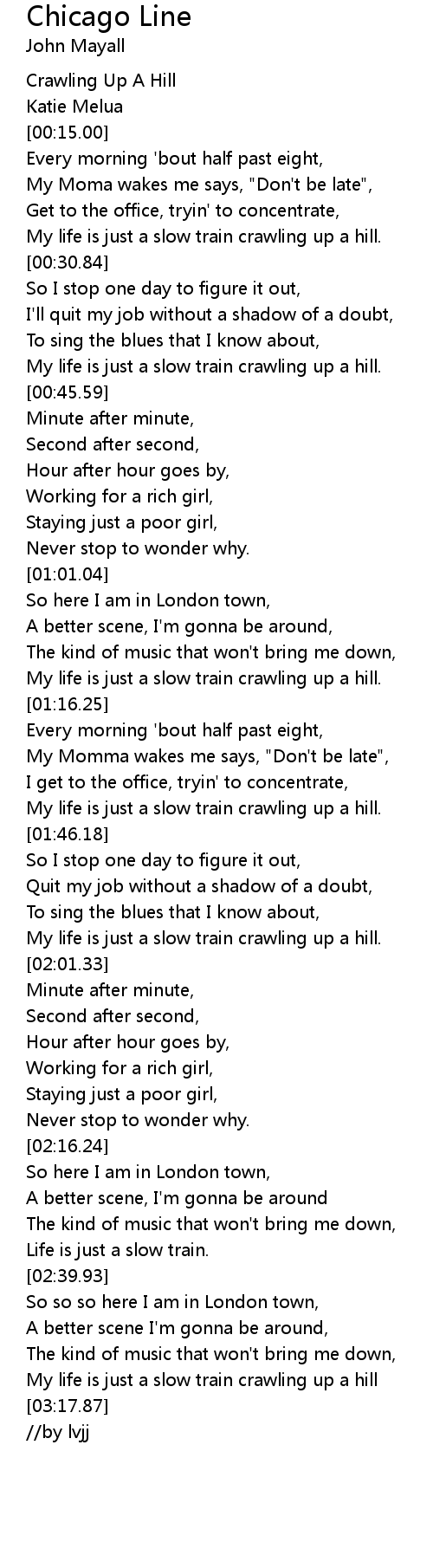 My life is just a slow train crawling up a hill |