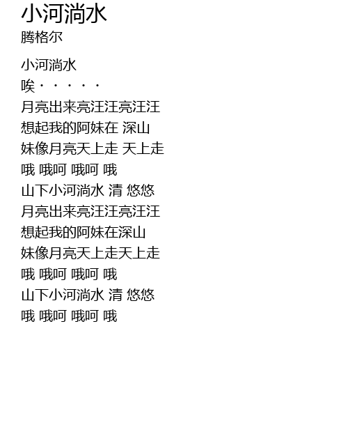 | [02:54.43] | 山下小河淌水 清 悠悠 |