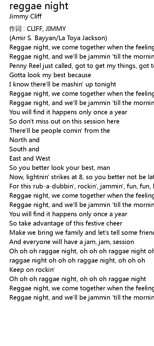 | Reggae night, and we'll be jammin 'till the morning light | |