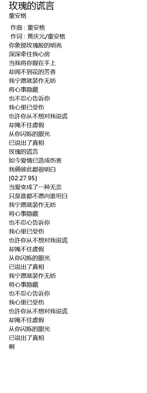 | [01:59.33] | 玫瑰的谎言 |
