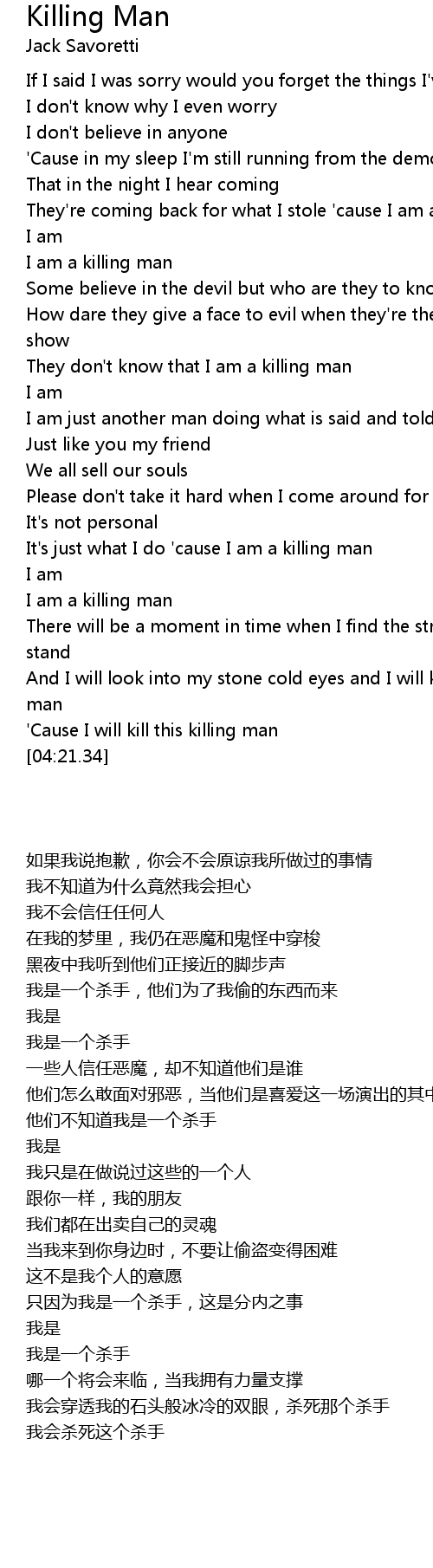 I am a killing man |