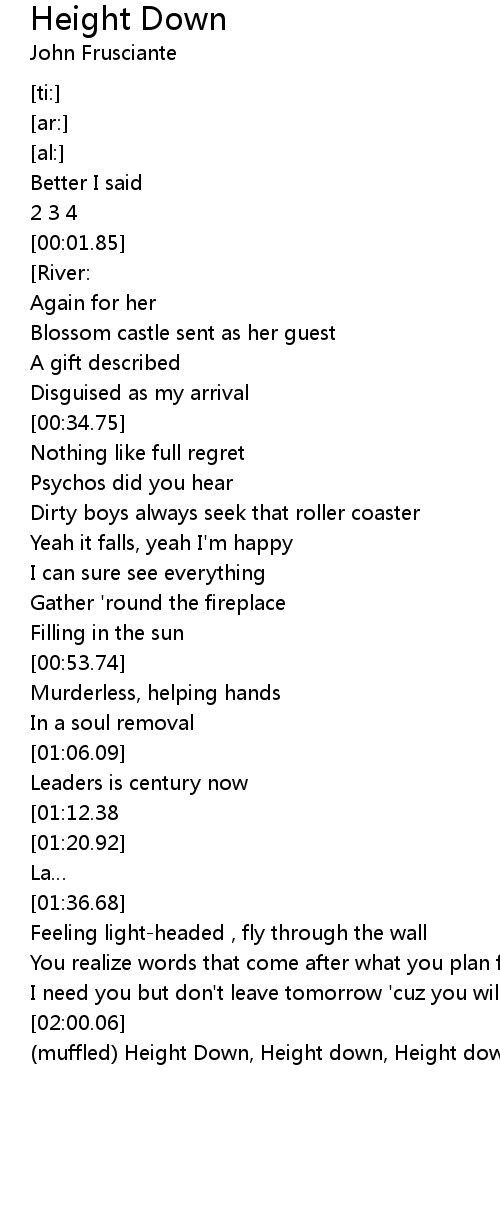 | [02:28.80] | (muffled) Height Down, Height down, Height down |