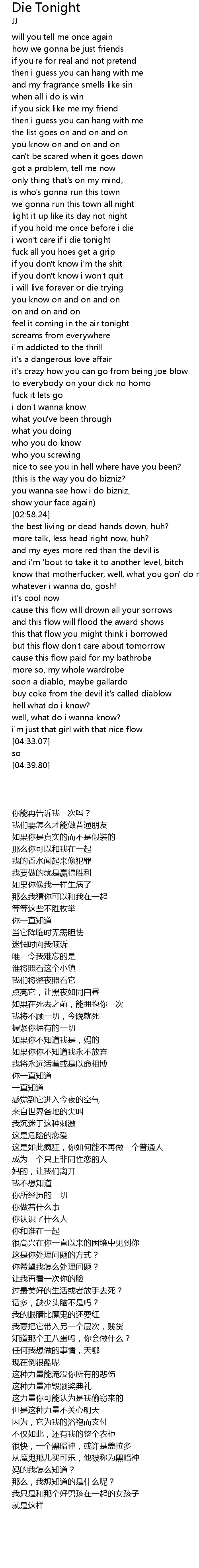 | [01:28.80] | i won't care if i die tonight |