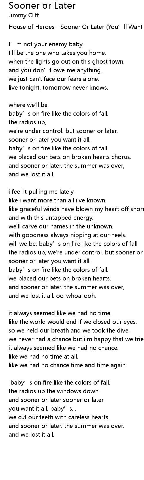 | House of Heroes - Sooner Or Later (You’ll Want It All) | |