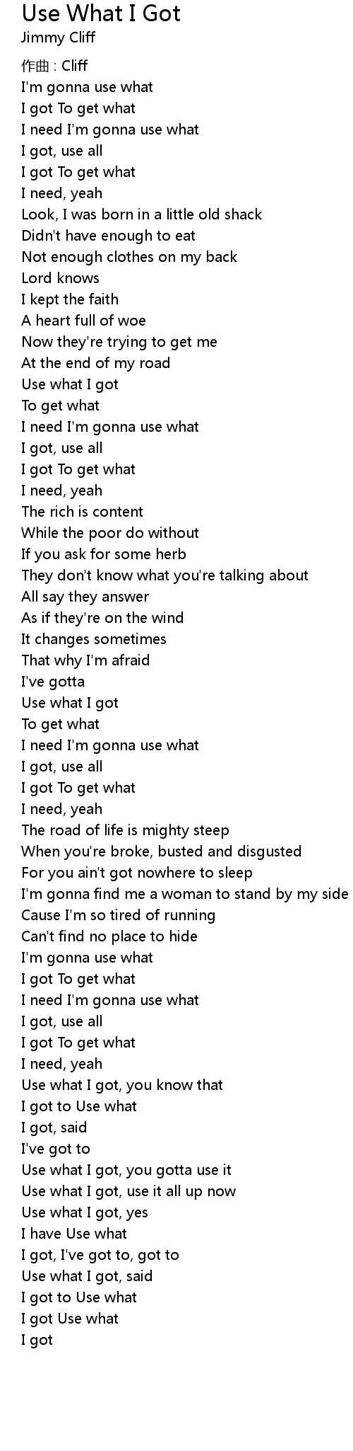 | Song | Use What I Got |