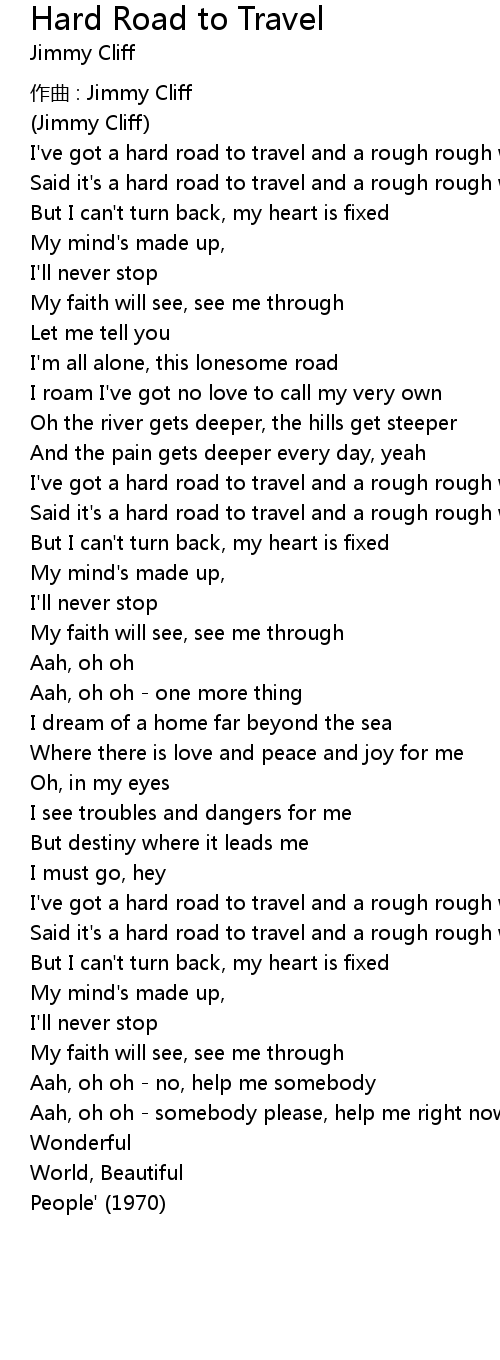 | I' ve got a hard road to travel and a rough rough way to go | |