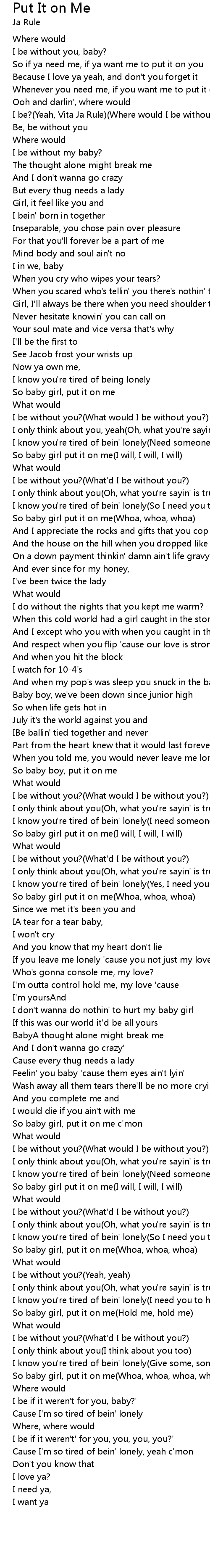 | So baby girl, put it on me c'mon | |