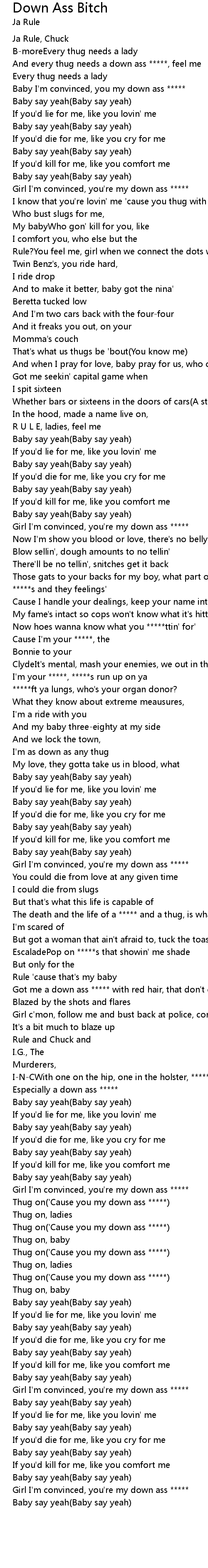 | And every thug needs a down ass *****, feel me | |
