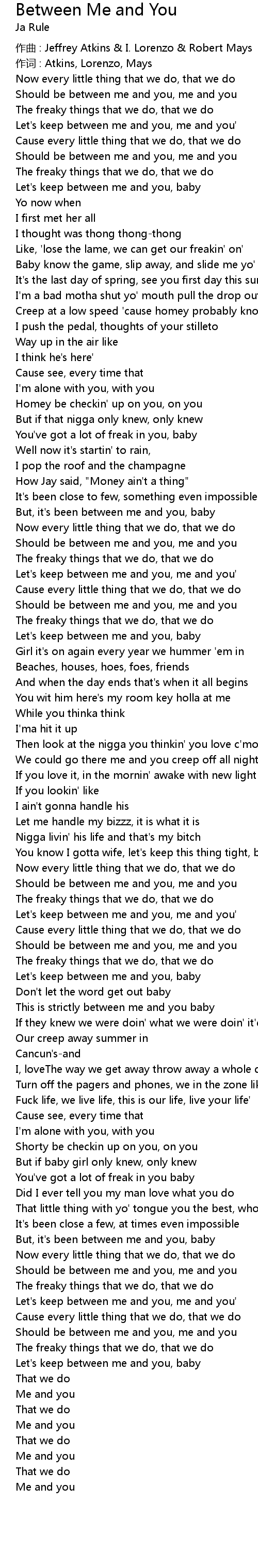 | Let's keep between me and you, me and you' | |