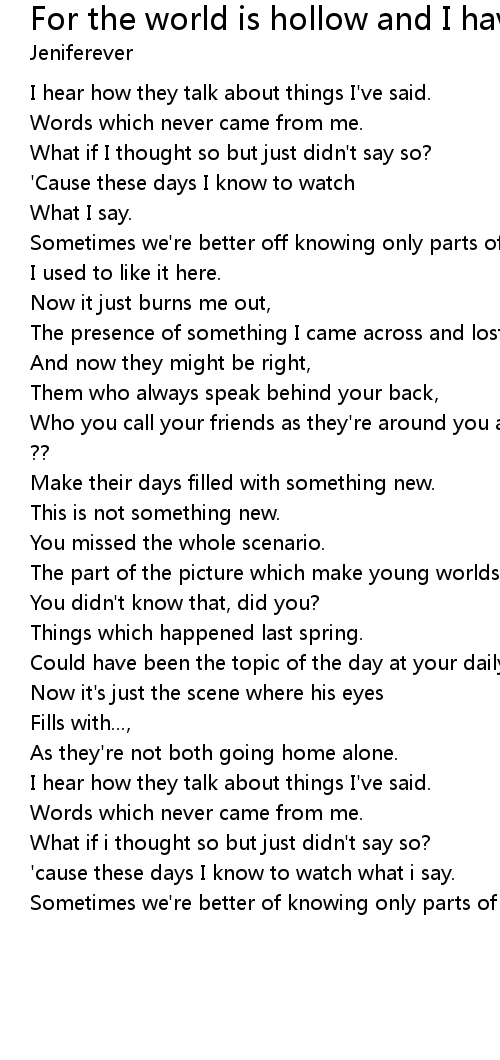 | Song | For the world is hollow and I have touched the sky |