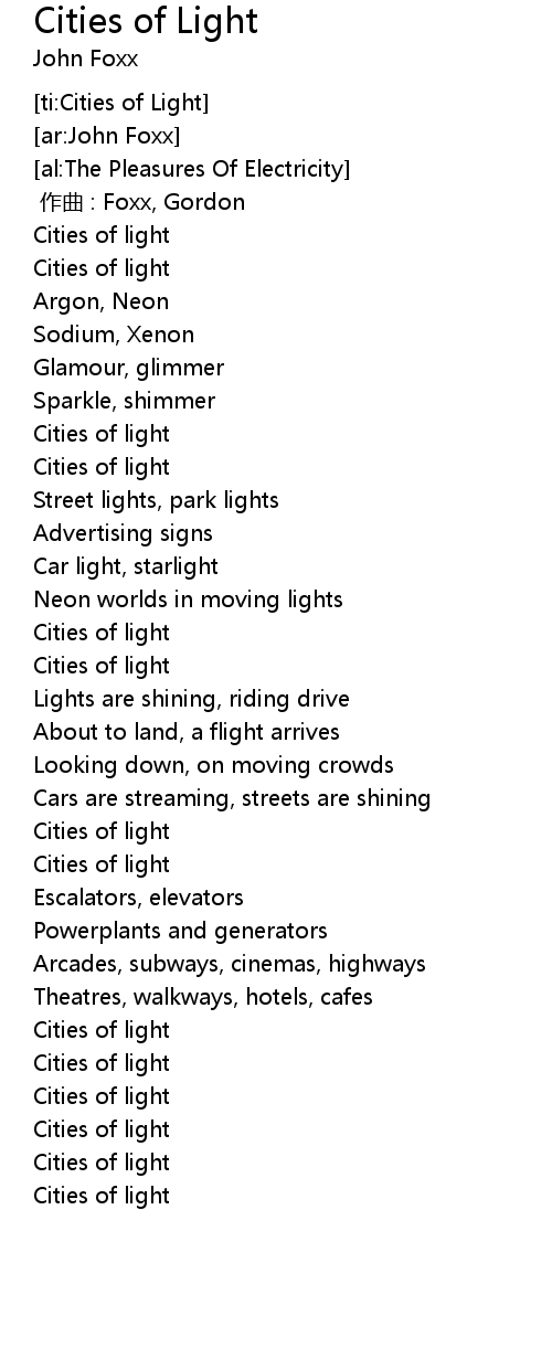 | [00:13.94] | Cities of light |