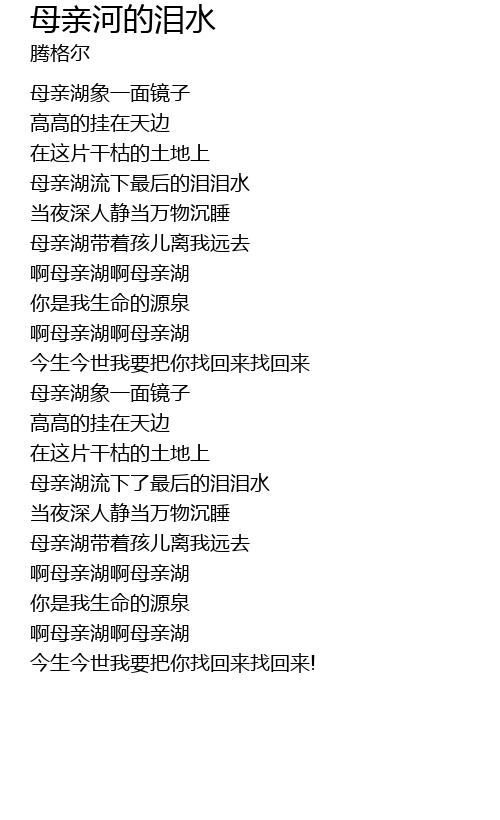 | [00:59.190] | 母亲湖流下最后的泪泪水 |
