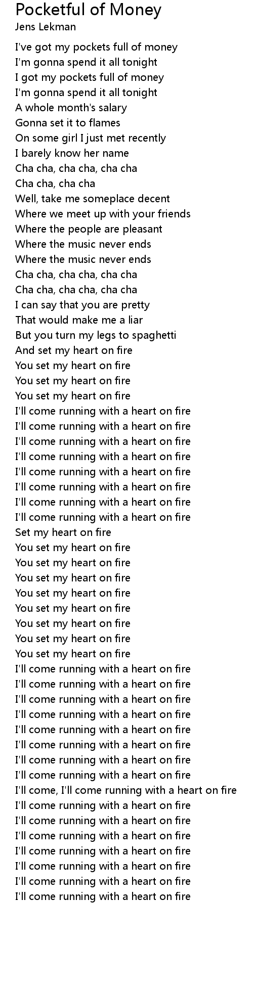 Pocketful of Money Lyrics