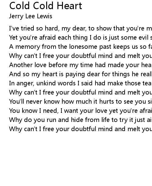 Why can't I free your doubtful mind and melt your cold cold heart? |