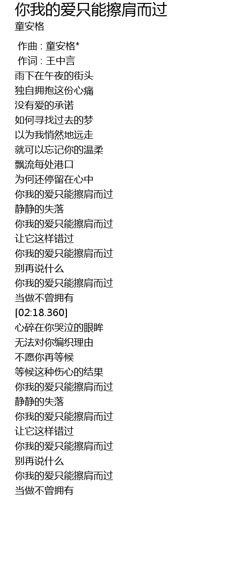 | [01:45.190] | 你我的爱只能擦肩而过 |