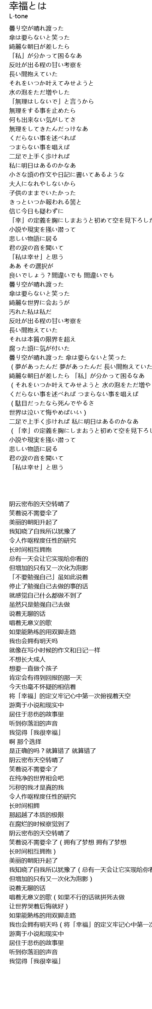 | [02:40.54] | 二足で上手く歩ければ 私に明日はあるのかなあ (「幸」の定義を胸にしまおうと初めて空を見下ろした) |