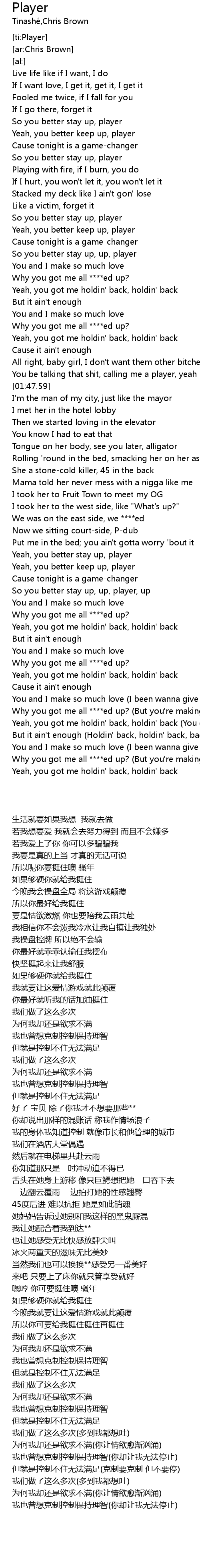 | [02:28.54] | So you better stay up, up, player, up |