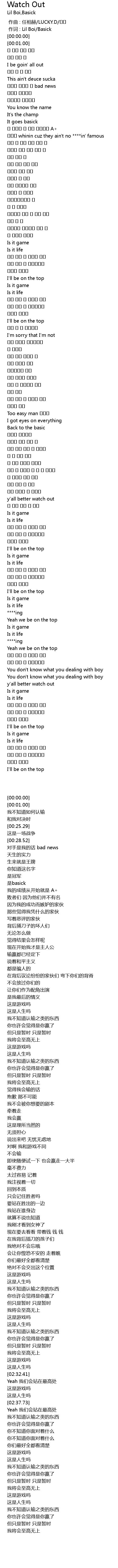 | [00:00.00] | zuo ci : Lil Boi Basick |