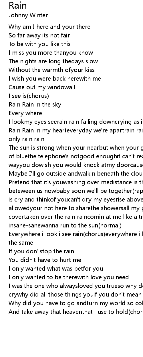 Rain Rain in my hearteveryday we're apartrain rain falling rain rainrain rain only rain rain |