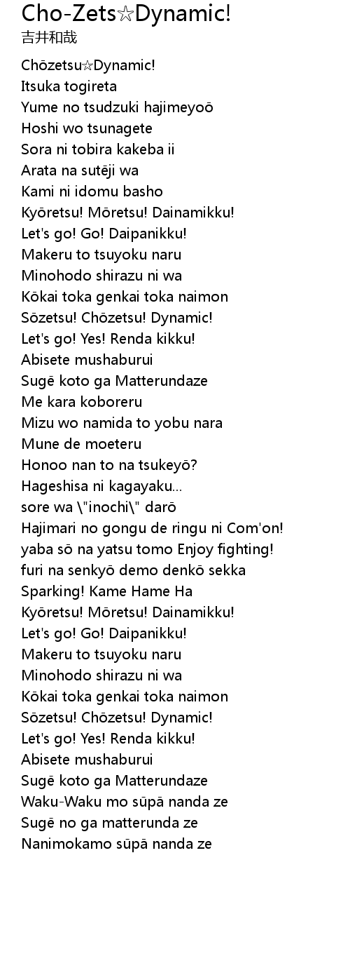 | Sō zetsu! Chō zetsu! Dynamic! | |