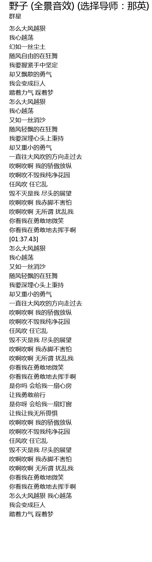 | [00:40.32] | 怎么大风越狠 |