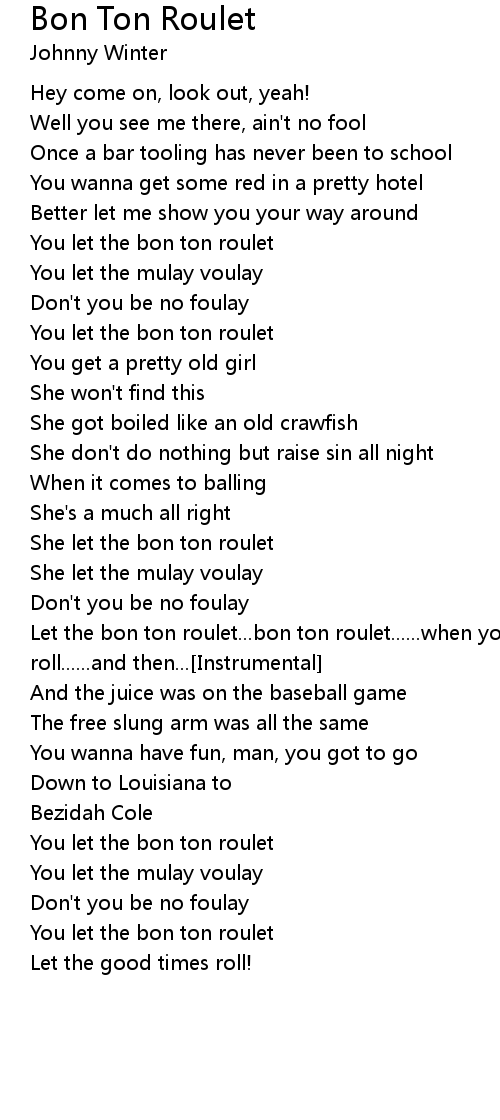 Let the bon ton roulet...bon ton roulet......when you come down and roll......and then...[Instrumental] |