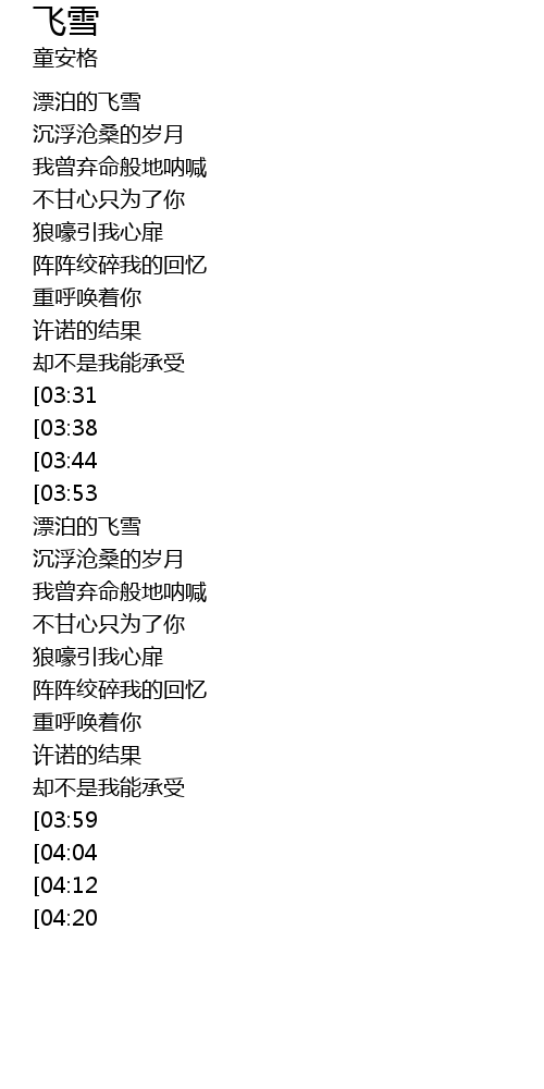 | [03:17][04:12] | 为何你对我就象那飞雪掠过 |