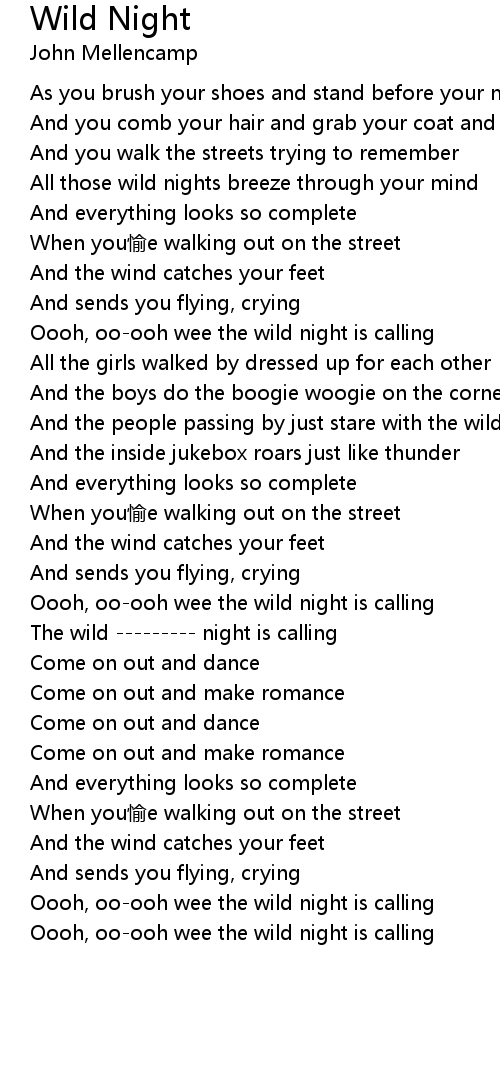 | Oooh, oo-ooh wee the wild night is calling | |