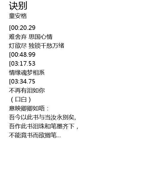 | [03:05.55][00:48.99] | 言难启 诀别吾妻 |