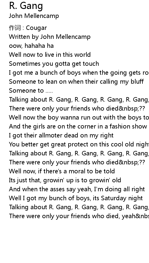 | Talking about R. Gang, R. Gang, R. Gang, R. Gang, R. Gang, R. Gang | |