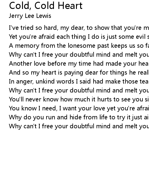 Why can't I free your doubtful mind and melt your cold cold heart? |