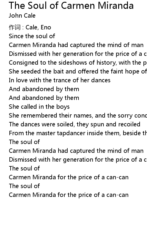 | Song | The Soul of Carmen Miranda |