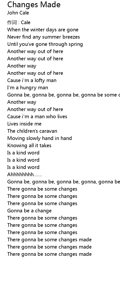 | Gonna be, gonna be, gonna be, gonna, gonna be some changes | |