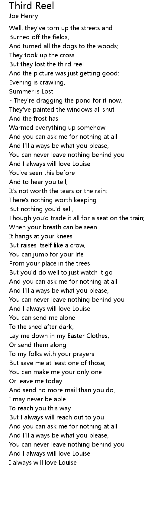 And I always will love Louise |