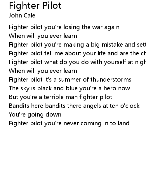 | Fighter pilot you're never coming in to land |