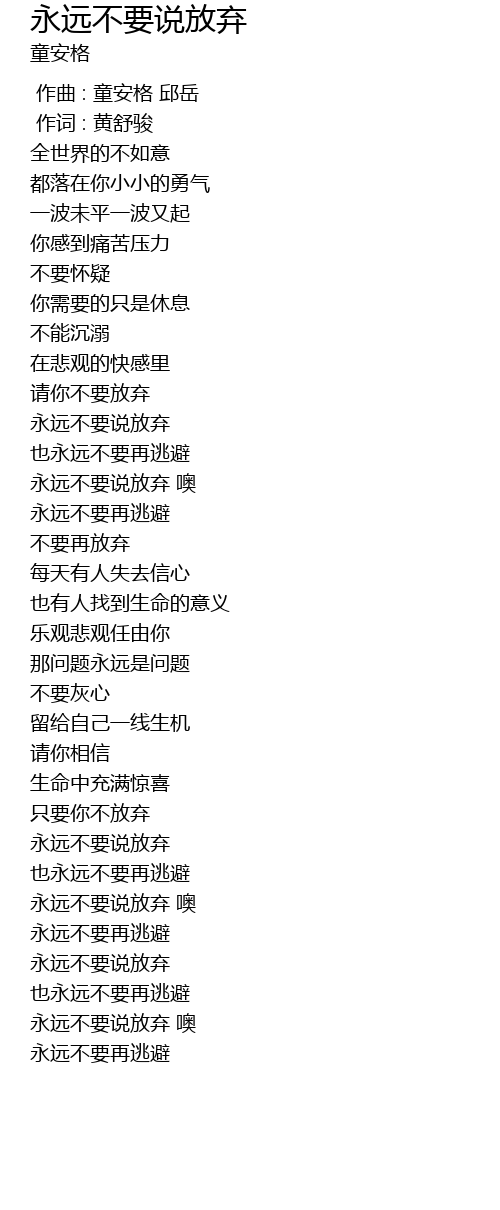 | [03:14.900] | yǒng yuǎn bú yào shuō fàng qì ō |