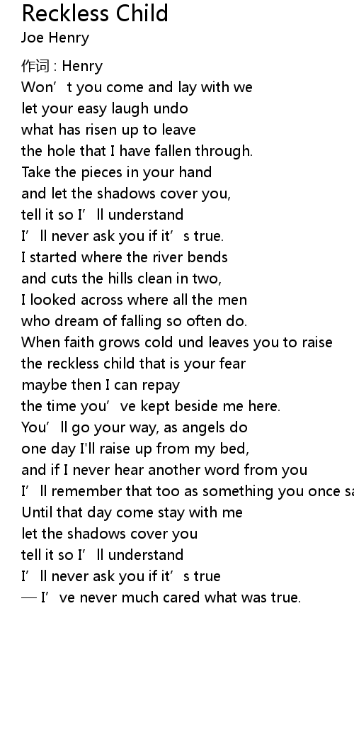 | Song | Reckless Child |