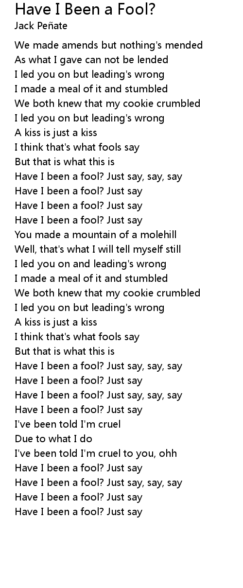 Have I been a fool? Just say |