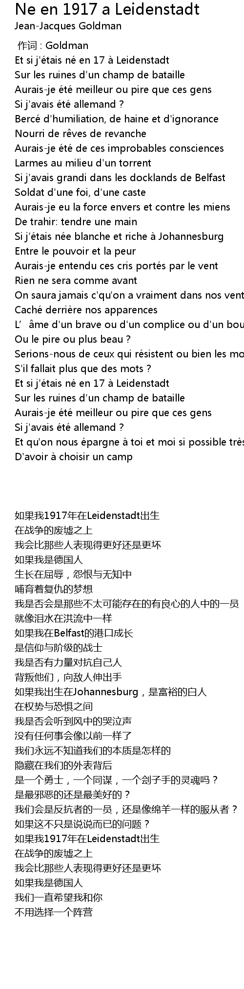 | [03:03.000] | Et si j'étais né en 17 à Leidenstadt |