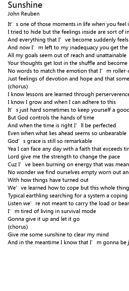 | Give me some sunshine to clear my mind | |