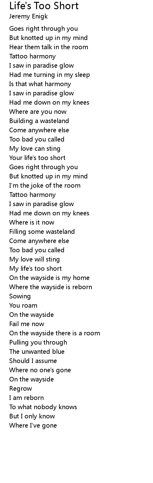 Your life's too short |