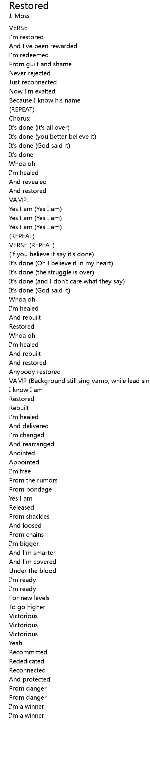 I'm restored |