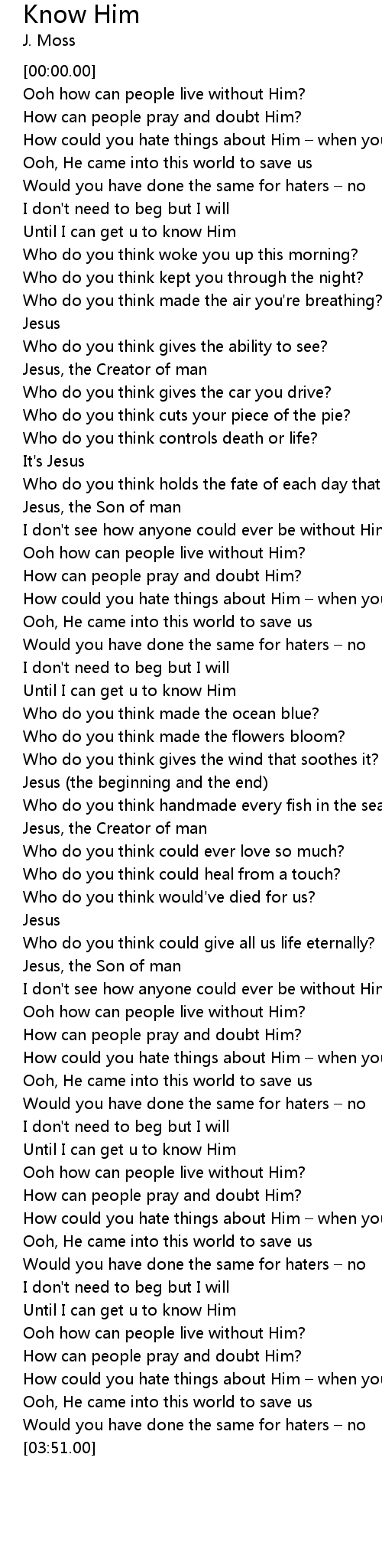 | [03:34.13] | How could you hate things about Him when you don' t know Him? |