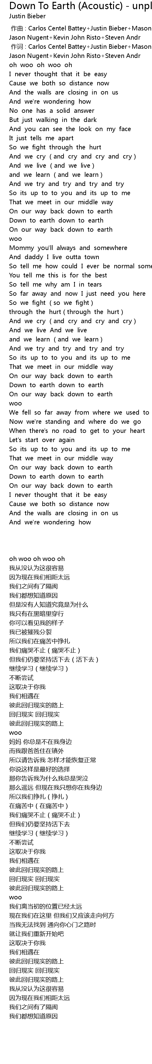 | [00:00.00] | 作曲 : Carlos Centel Battey+Justin Bieber+Mason David Levy+Waynne Jason Nugent+Kevin John Risto+Steven Andr |