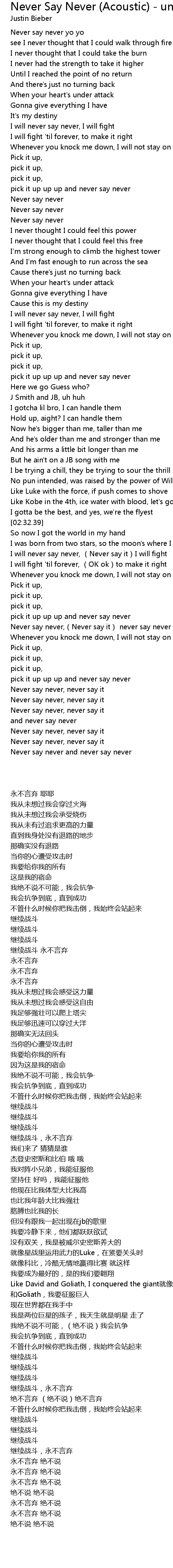 | [03:01.11] | Never say never,(Never say it) never say never(ok ok) |