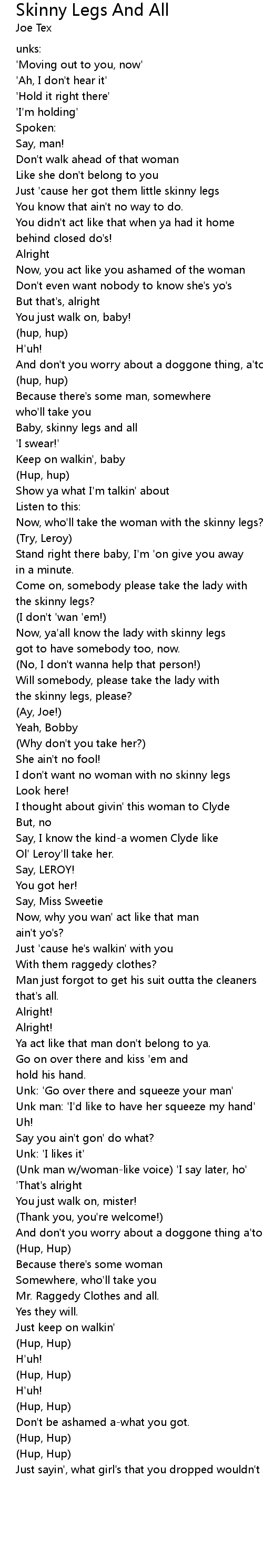 I don't want no woman with no skinny legs |